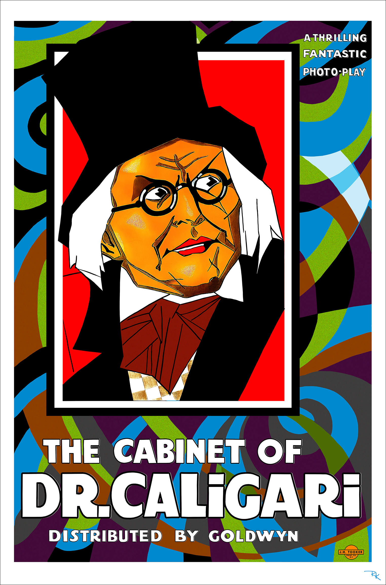 Digital Restoration: Our commitment to preserving cinematic history led us to digitally restore this rare, badly damaged poster of “The Cabinet of Dr. Caligari.” The restoration process ensures that the haunting imagery and the essence of the film are vividly revived allowing a new generation to experience the mesmerizing madness of the evil Dr. Caligari.