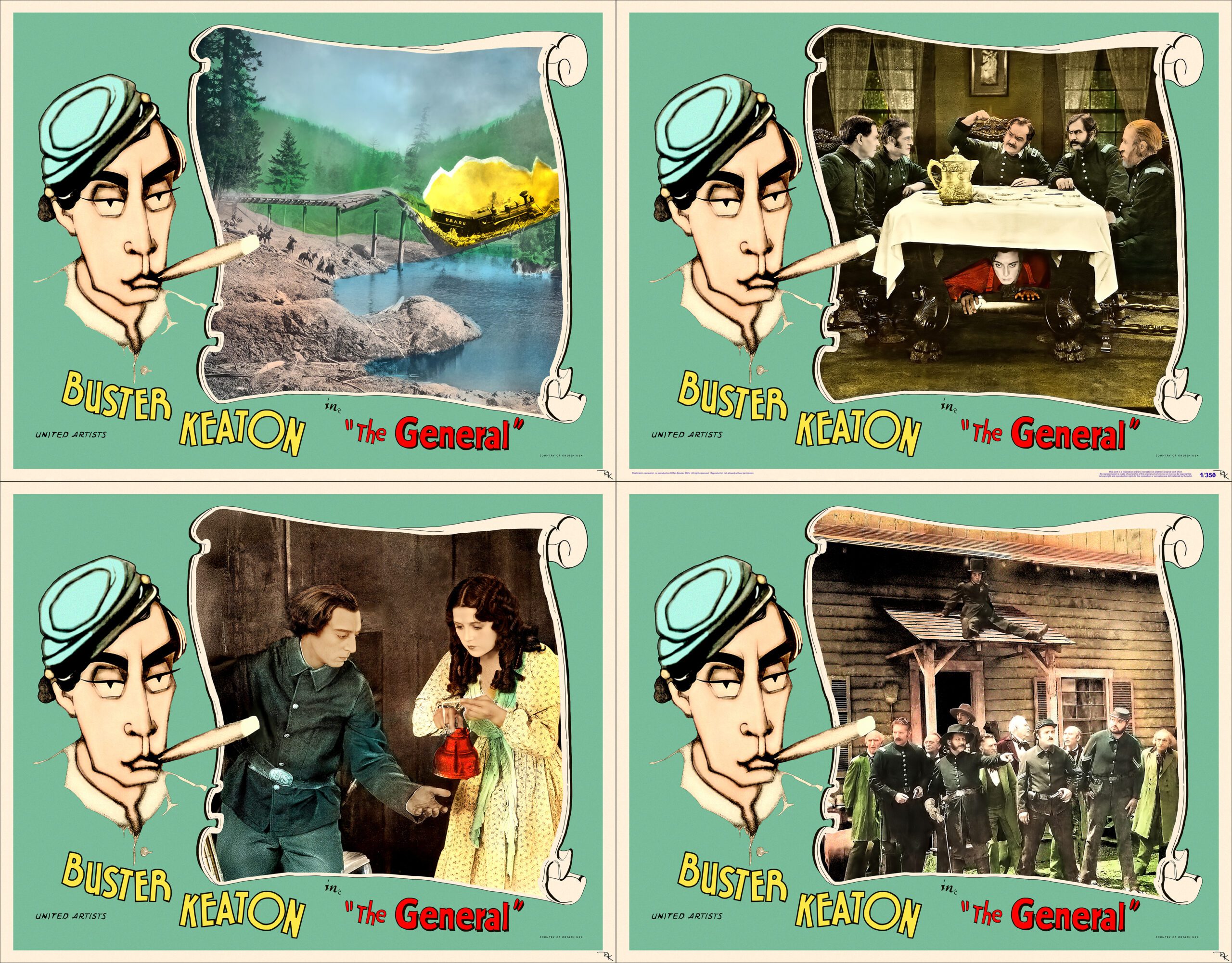 Our Restored Set of four 11” x 14” lobby cards from “The General” honors Buster Keaton’s most acclaimed film with renewed brilliance.